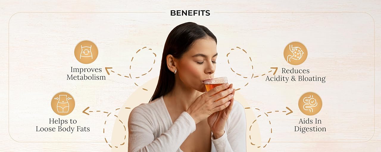 The herbs in the Kadha work to activate your metabolism and support 24-hour metabolism. It functions as a gut health supplement, improving digestion and promoting smoother nutrient absorption, which is vital for effective fat breakdown.